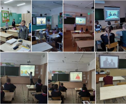 Учащиеся 1-4 классов отправились в путешествие по России, выяснили, что движет путешественниками. Дети смотрели видеоролик о русском путешественнике Федоре Конюхове, он побывал во многих уголках нашей страны; прослушали видеообращение кандидата биологических наук Ю. Рощевского, вспомнили и мультфильм «Паровозик из Ромашково».