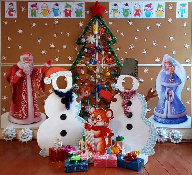 В Солнечной школе дети под руководством учителя ИЗО Коноваловой Елены Ивановны придумали следующее. Оформили зимний уголок со сменными красочными стендами: тут вам и Новый год, и Рождество, и Старый Новый год, и Крещение, и даже День Снеговика.